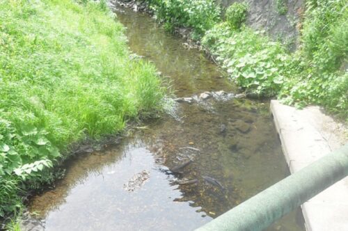 バス停を右折すると、100mも行かずに「報国寺入口」の看板が立っている