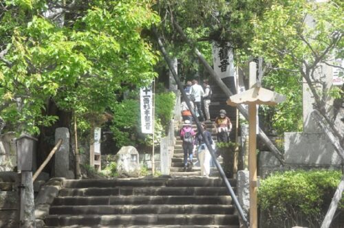 石段のすり減っているのは多くの信者が上ってきた証であり、