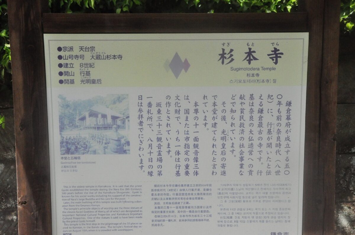 正面には鎌倉最古のお寺である杉本寺の「苔の石段」が見える